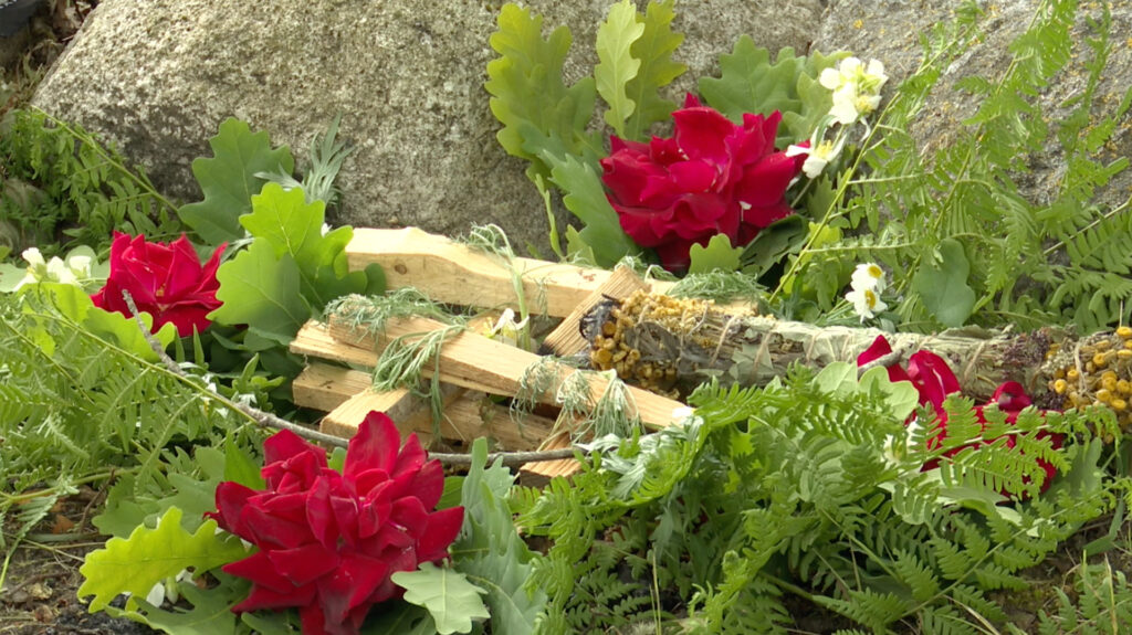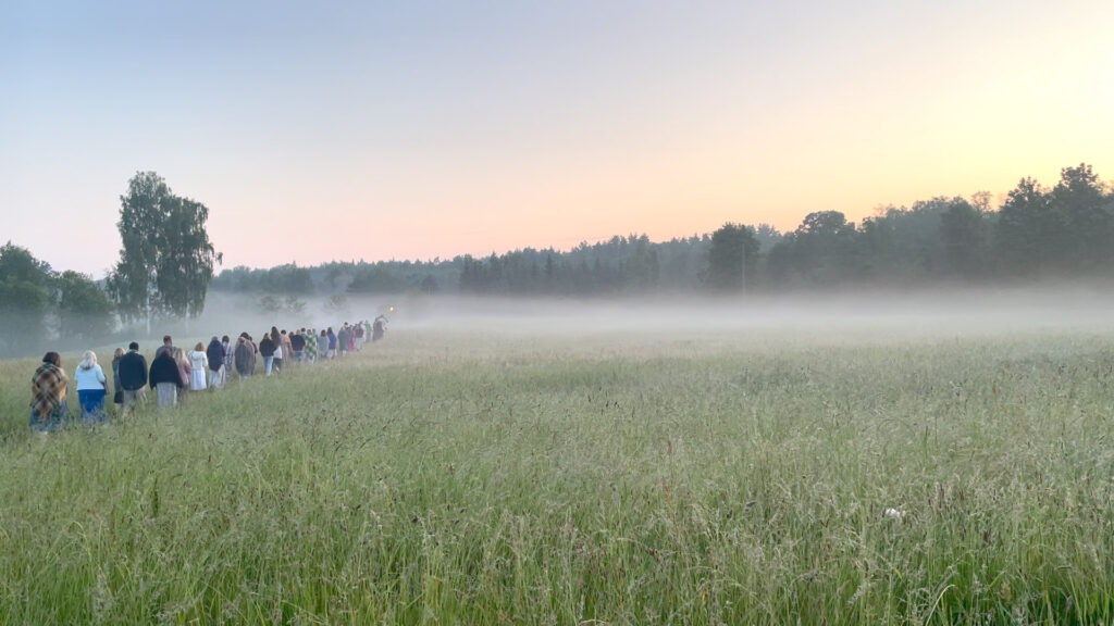 Ilga ist da und irgendwie auch nicht da, durch ihre Anweisung wie die Kräuterwedel zu gebrauchen sind ergießt sich eine Fülle an Empfindung, Erinnerung und Verbindung in den kleinen heißen Raum aus, und zieht durch unsere geöffneten Poren direkt ins Nervennetz. Wir reden, lachen, schweigen, wedeln, seufzen, weinen, atmen, zaghaft beginnen wir zu singen und uns zu erinnern was Frau sein ist. Damals und jetzt, für jede einzelne und für das Kollektiv. Dampf zieht ins Dämmern, Düfte der Kräuter in unsere Herzen. Gegenseitig klopfen wir unsere Rücken mit den Wedeln ab, reiben unsere Rücken mit Kräutersalz ein und dann später den eigenen Körper überall mit Honig, der so wunderbar süß und nährend in alles dringt und eine Sinnlichkeit ergreift uns, fern von Sexualität nur durch das Erleben eine Frau unter Frauen zu sein, eingebunden in eine Schwesternschaft die trägt und gehen läßt.